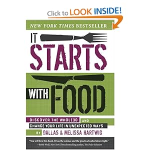It Starts With Food is the book that inspired Erik and I to pursue Paleo for awhile. We did the Whole30 Challenge (which they are doing as a big group starting in August!) and we thought it was great, but for us, not sustainable. However, we do eat a LOT less gluten, processed foods and the like in favor of gluten-free or even grain-free foods, lots of organic foods, etc. We have two Paleo cookbooks that we use pretty religiously and love. I guess we are 80/20 but I've never really figured out the percentages. Needless to say, whole food rocks and I eat as much as possible.